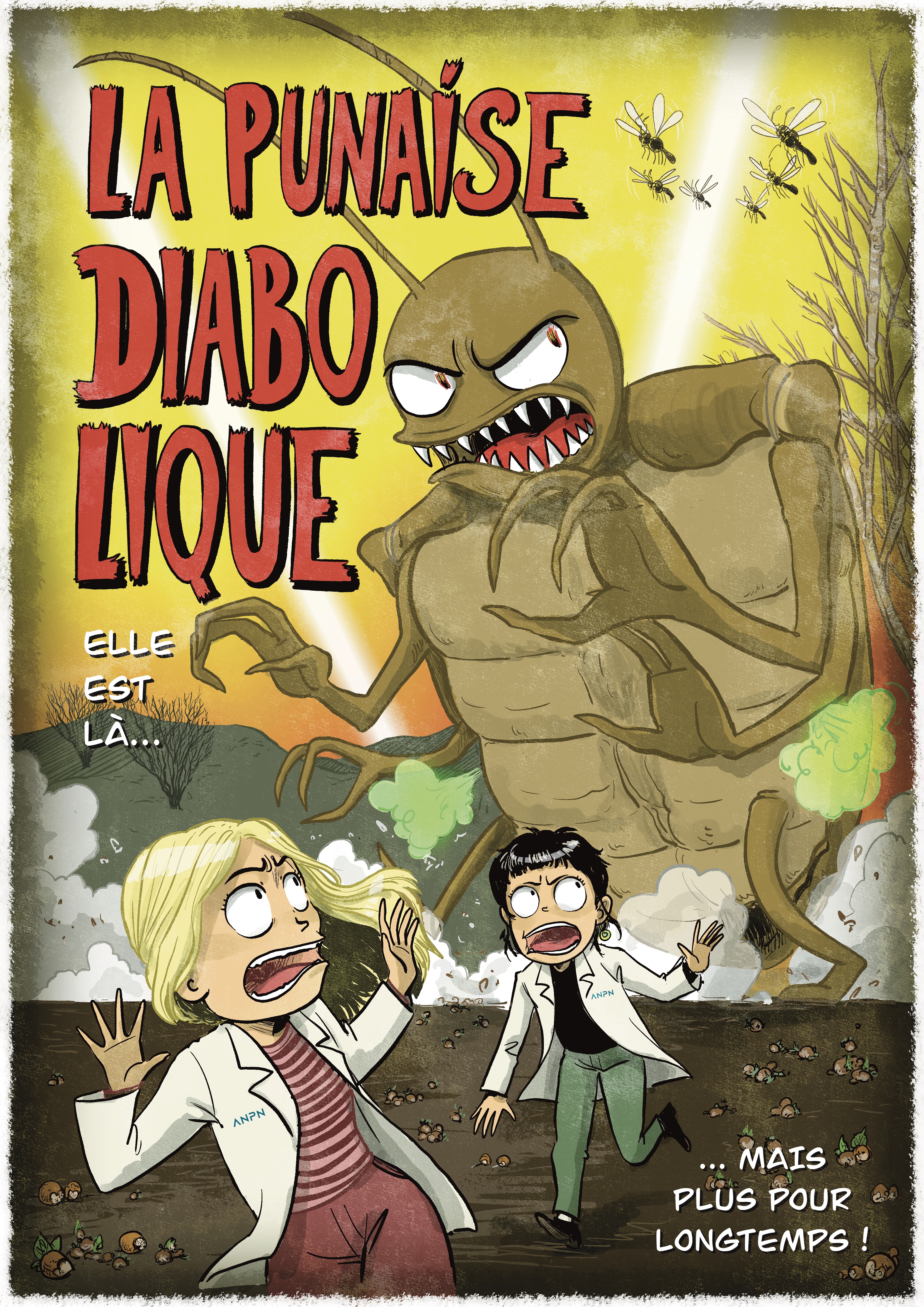 C’est à Fraval (2011) que l’on doit ce nom évocateur de « punaise diabolique », et il faut bien reconnaitre qu’il n’avait pas tort [1]. D’un point de vue écologique, Halyomorpha halys est une espèce exotique envahissante, capable de perturber les équilibres locaux et de menacer la biodiversité. Dans les habitations, c’est une véritable casse-pied : à l’automne, elle cherche un endroit douillet pour passer l’hiver… quitte à s’inviter dans nos cuisines, se glisser entre les casseroles ou sous le linge qui sèche. Et si on a le malheur de la déranger, elle dégage une odeur âcre et persistante que bien des nez connaissent désormais. Du côté des cultures, elle n’est pas en reste : sa capacité à se nourrir de plus de 300 plantes en fait un ravageur redouté aussi bien en arboriculture, qu’en grandes cultures ou en maraichage [3]. Autrement dit, de par son aspect nuisible et envahissant elle est diabolique pour à peu près tout le monde, et c’est encore sans compter les difficultés à réguler sa population.