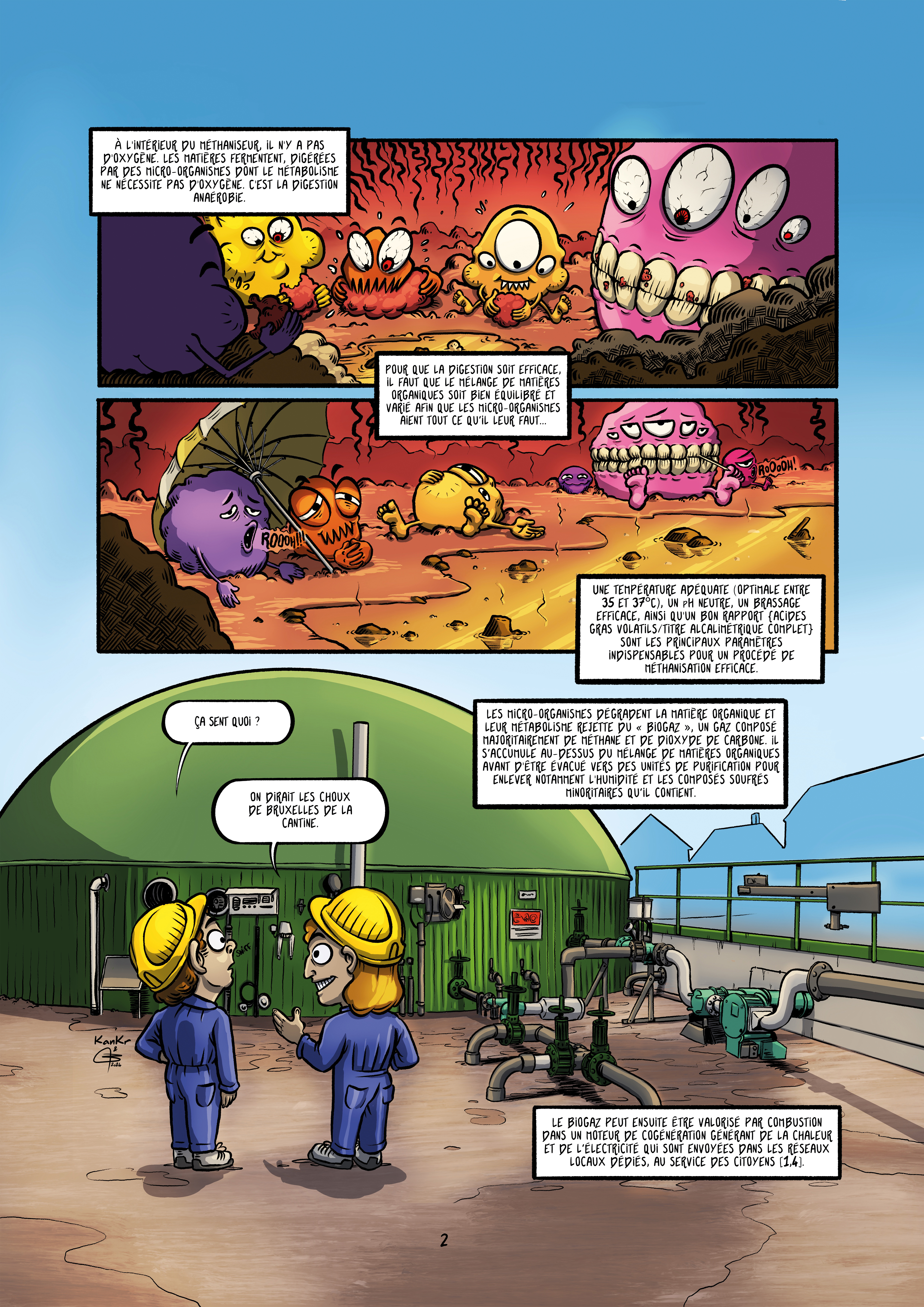 Le biogaz est un gaz issu de la fermentation anaérobie, c’est-à-dire en absence d'oxygène, de matières organiques. Il peut s’agir de résidus agricoles, de fumiers, d’effluents de l’industrie agro-alimentaire, de déchets verts, de déchets ménagers organiques ou compost, de boues de stations de traitement d’eaux usées etc … Ce processus biochimique naturel, aussi appelé méthanisation, a été perfectionné et porté à l’échelle industrielle : les matières organiques sont rassemblées dans des réacteurs, appelés méthaniseurs ou digesteurs dans lesquels l’absence d’oxygène est garantie. Au cœur des méthaniseurs, un consortium de bactéries digère et dégrade les matières organiques. Les consortiums de bactéries sont généralement formés par les interactions de deux ou plusieurs groupes de bactéries permettant d'améliorer le taux de dégradation. Le métabolisme de certaines bactéries rejette du dioxyde de carbone (CO2) tandis que d’autres bactéries dites méthanogènes rejettent du méthane (CH4). Ces deux gaz, le CO2 et le CH4, sont donc les constituants majoritaires du biogaz ainsi généré, comptant respectivement pour environ 40% et 60% du volume de gaz. Le CH4 étant un combustible, l’intérêt de la production de biogaz est de valoriser les déchets organiques engendrés par notre société en les transformant en un gaz à haute valeur énergétique [1].