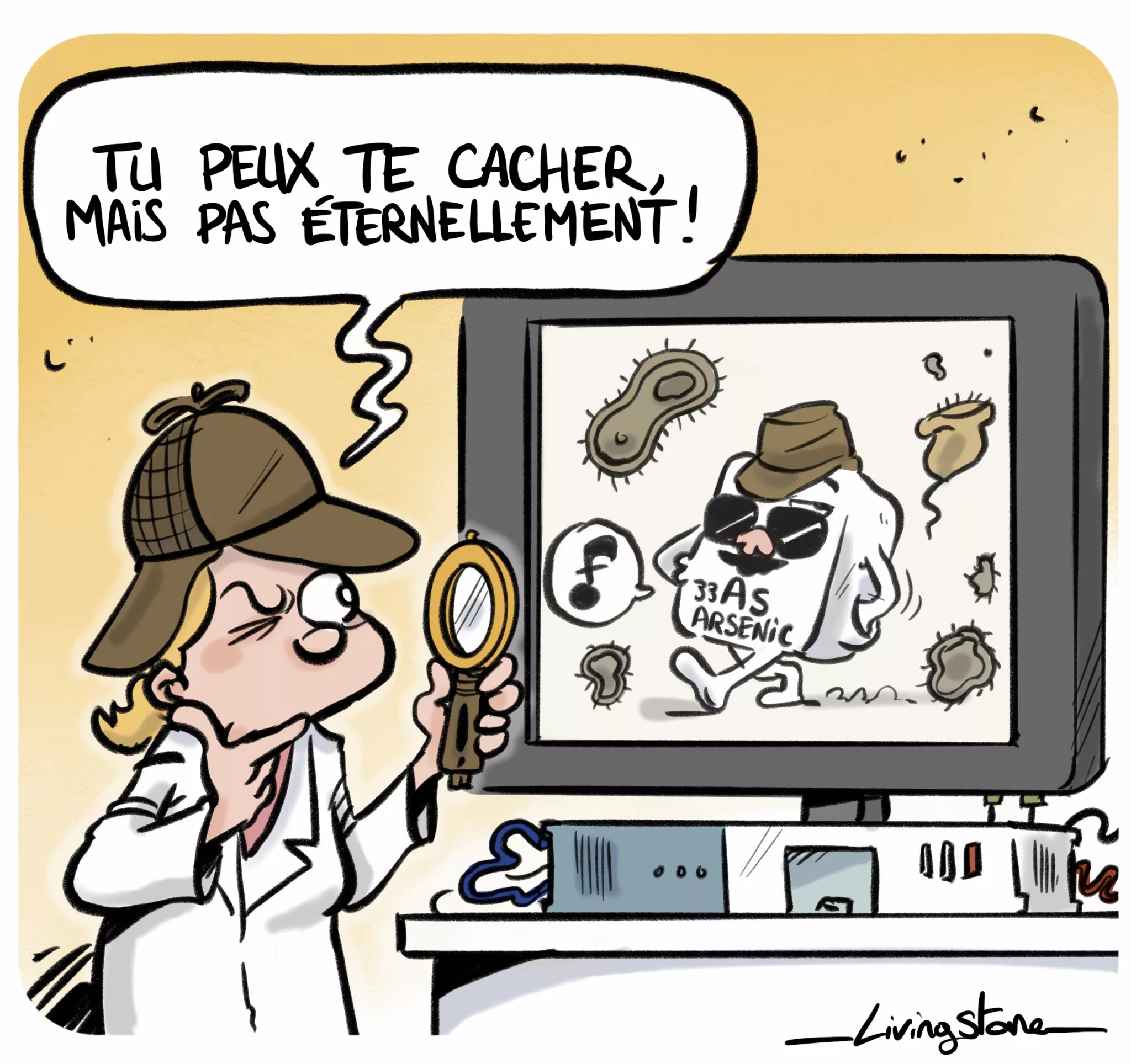 Pour doser spécifiquement les formes réduites et oxydées de l’arsenic, il faut en amont les séparer grâce à une technique analytique appelée « chromatographie ». Le mélange est injecté dans une colonne contenant un matériau fixe qui va retenir les différents composés. Un solvant liquide, circulant dans la colonne, va entrainer les composants du mélange. Selon leur nature, ceux-ci se déplacent à des vitesses variées car ils sont retenus plus ou moins longtemps sur le matériaux fixe, ce qui permet alors de les séparer. À partir de là, il est possible de différencier l’arsénite de l’arséniate, mais aussi certaines formes organiques, en utilisant simultanément la chromatographie et la spectrométrie de masse. Cette méthode, plus complexe, n’est souvent pratiquée que dans les laboratoires de recherche.