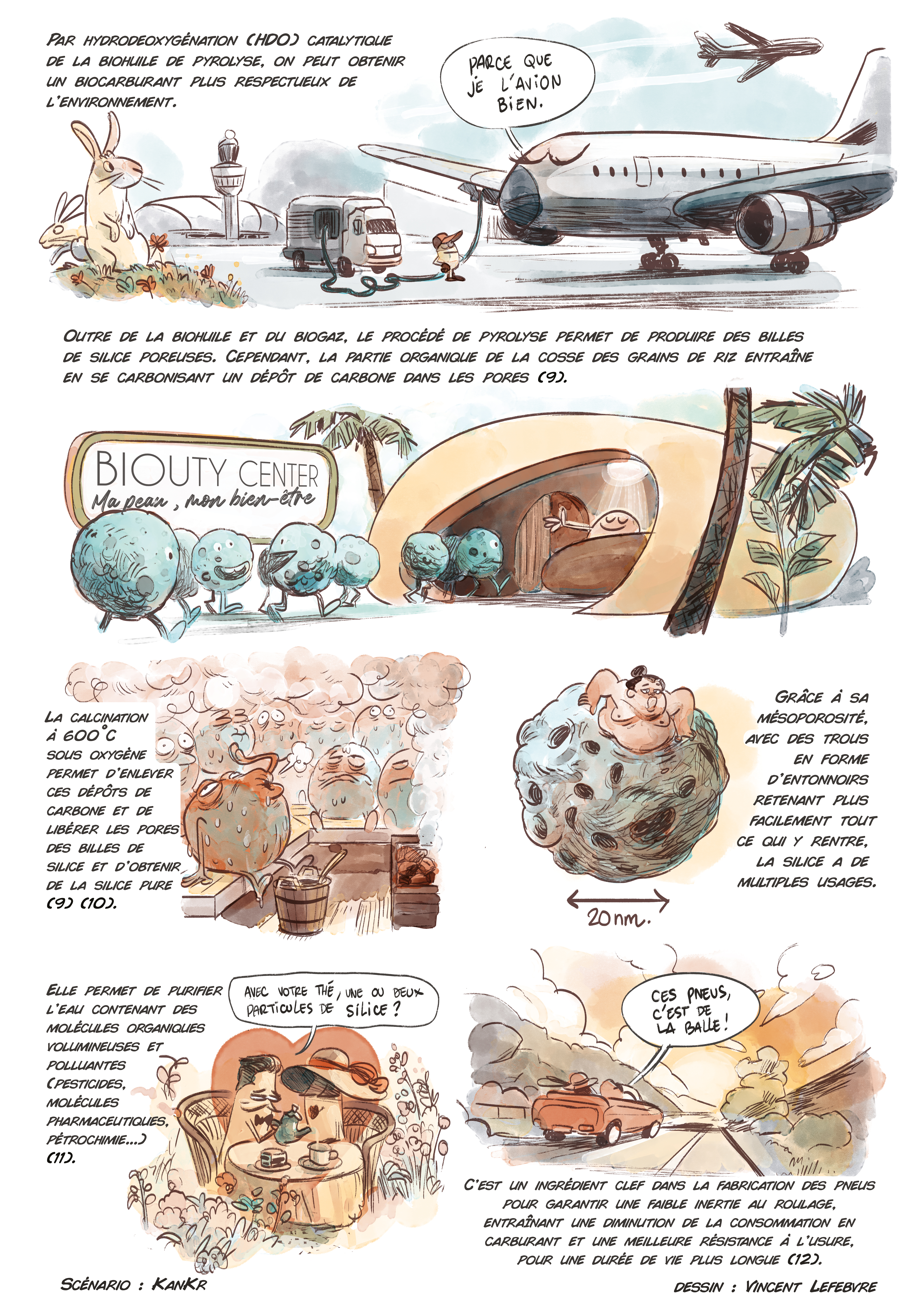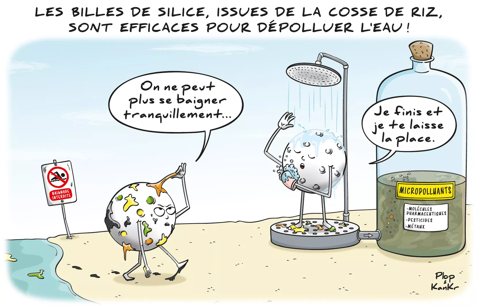 En résumé, l’affinité de la silice pour les composés hydrophiles chargés positivement offre une méthode polyvalente et efficace pour purifier l’eau. De plus, la récupération des métaux précieux à partir des effluents industriels pourrait améliorer considérablement les méthodes actuelles de traitement de l’eau et contribuer aux efforts de conservation de l’environnement et de récupération des ressources. Aujourd’hui, c’est le cœur du projet de recherche Circuballe qui, par la valorisation des déchets du riz simultanément dans l’utilisation de la bio-huile comme bio-carburant et dans le traitement des eaux par la silice, entend développer la pyrolyse de la balle de riz comme un nouveau mode d’économie circulaire.