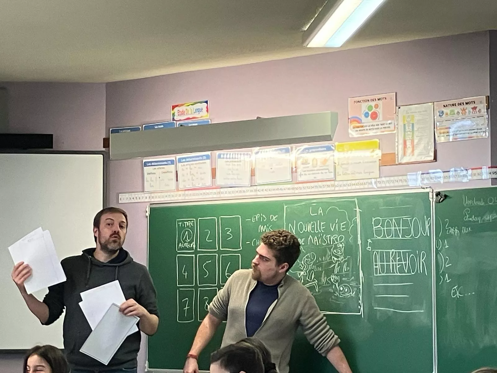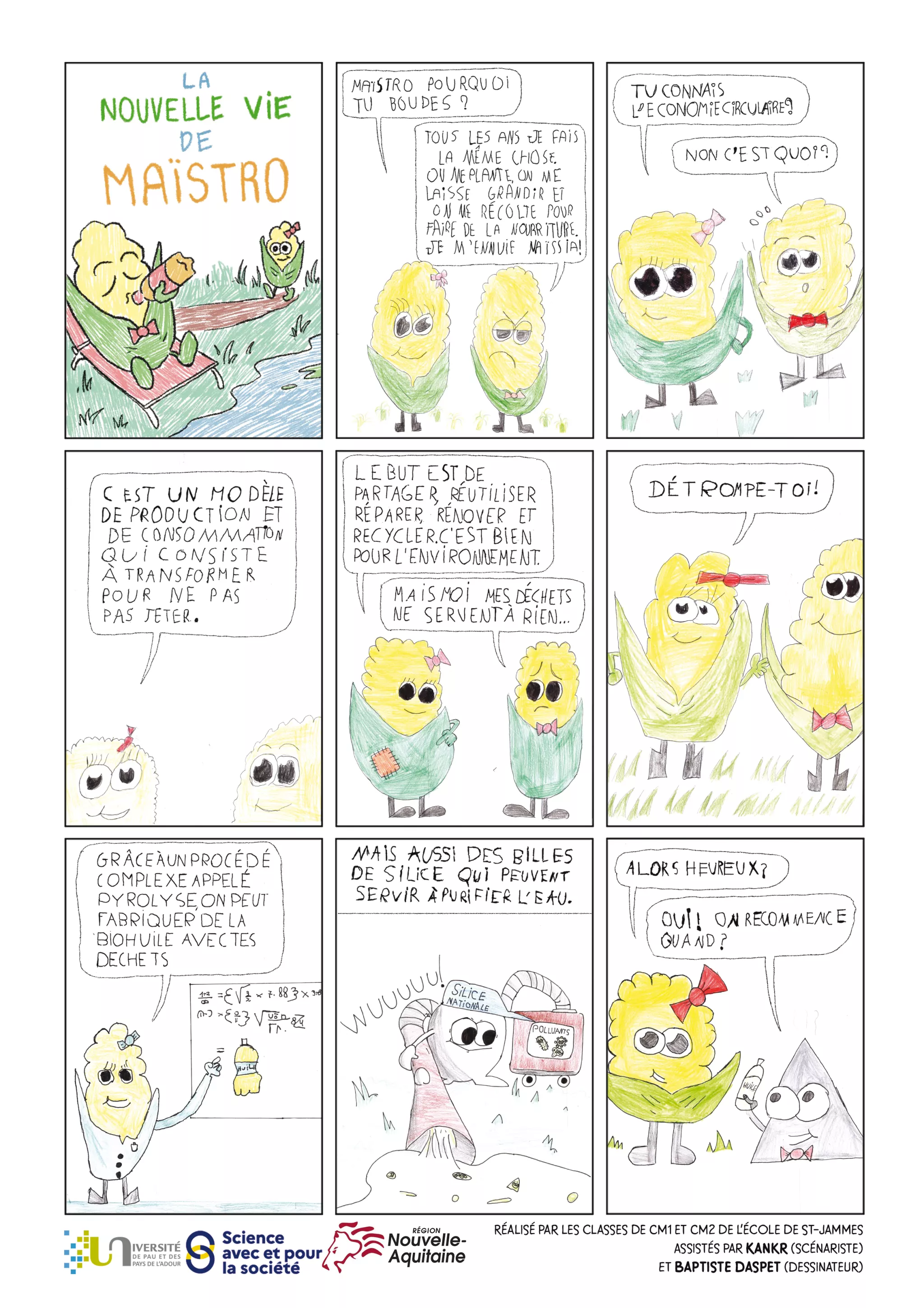 Lors de cette édition, le chercheur Brice Bouyssière a présenté aux élèves de CM1 et CM2 de l'école de Saint-Jammes, ses travaux de recherche sur le maïs, accompagné des artistes Baptiste Daspet (dessinateur) et KanKr (scénariste).